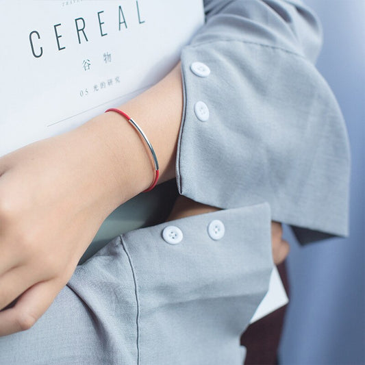 Silver Elbow Red & Black Rope Couple Bracelet
