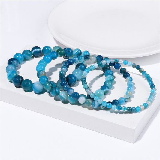 Blue Stripe Round Agate Gemstone Bracelet, 6-12mm