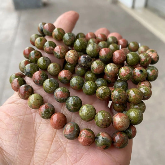 Unakite jasper gemstone stretch bracelet, 4-12mm