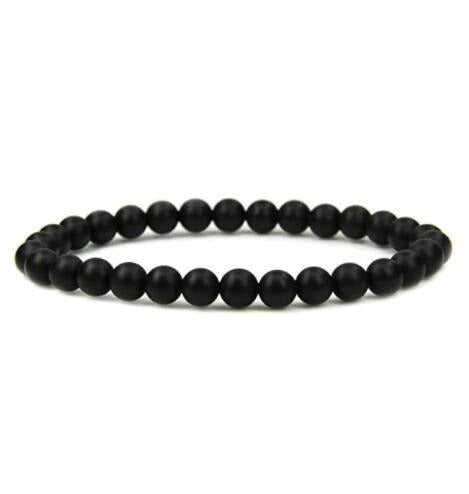 Matte black onyx (agate) gemstone stretch bracelet, 6-12mm