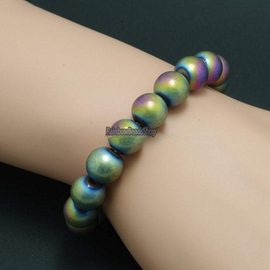 Matte Multicolor hematite gemstone stretch bracelet, 6-10mm