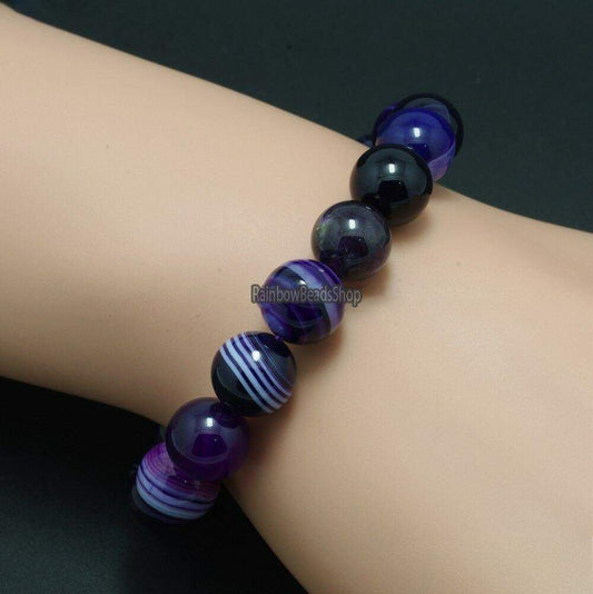 Purple stripe agate gemstone stretch bracelet, 6-12mm