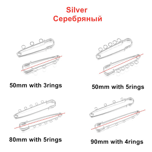 10pcs Safety Pins Brooch Blank Base, 50-90mm