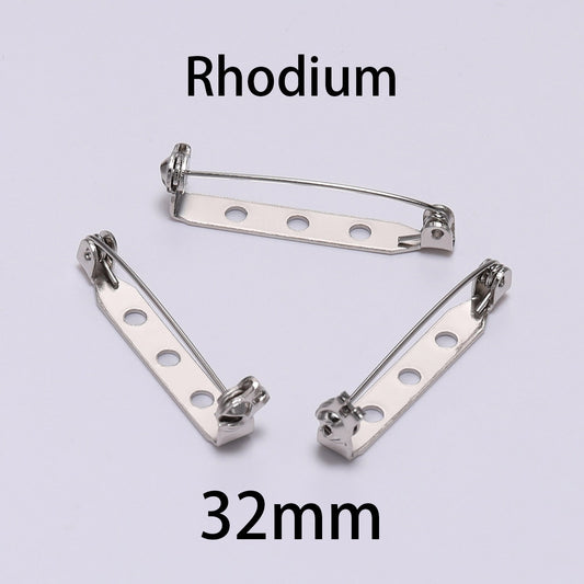 50pcs 15-45mm Rhodium Brooch Clip Base Pins Multi-Size