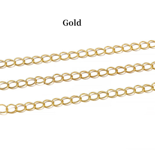 Chain Width 1.35mm 1.45mm Necklace Chains Flat Oval Link, 5 Meters
