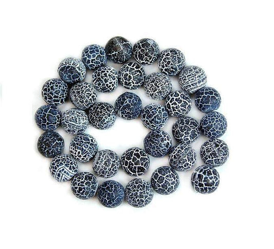 Matte Blue Fire Agate Beads, Frosted Crackle, 4-16mm, 15.5'' Strand