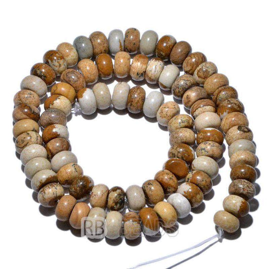 Rondelle Disk Picture Jasper Beads, Matte and Faceted