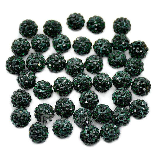 Emerald Rhinestone Disco Ball Clay Beads, 6-12mm 10/20pcs