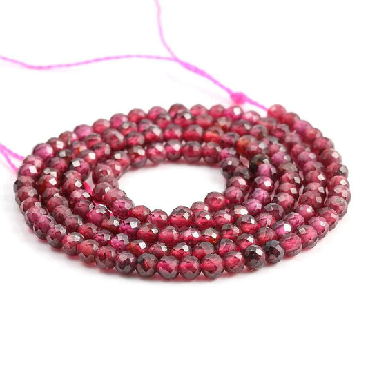 Facettierte rote Granatperlen, 2-3 mm, rund, 15,5''