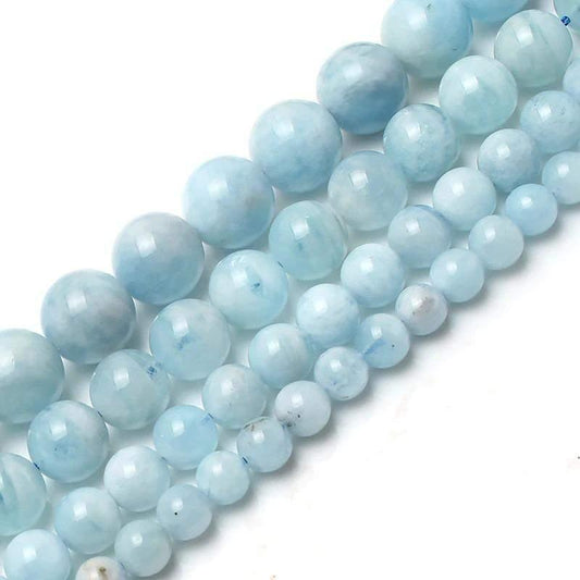 Aquamarinperlen, rund, 4–14 mm, 15,5'' Strang