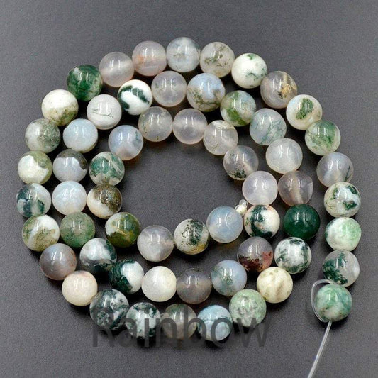 Perles d'agate d'arbre, rondes naturelles 4-10 mm, brin de 15,5''