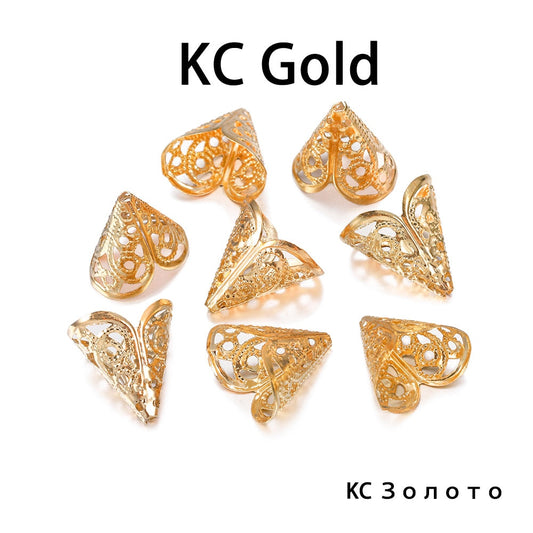 Capuchons de perles en forme de cœur de pêche à 4 pétales de 8 mm, 50 pièces