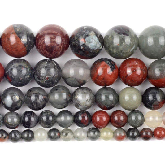 Perles de pierre de sang africaine, rondes, 6-12 mm, fil de 15,5''