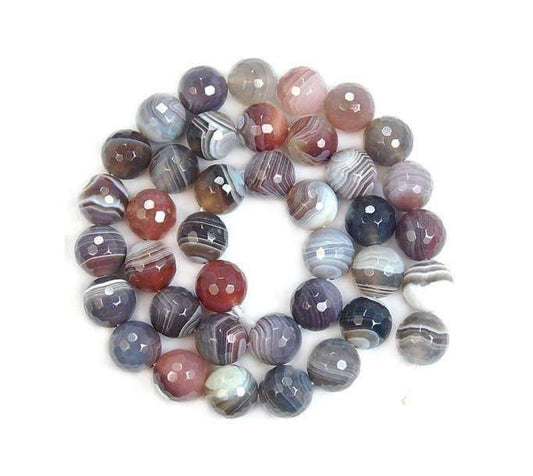 Perles d'agate persane du Botswana, rondes à facettes 6-14 mm, brin de 15,5''