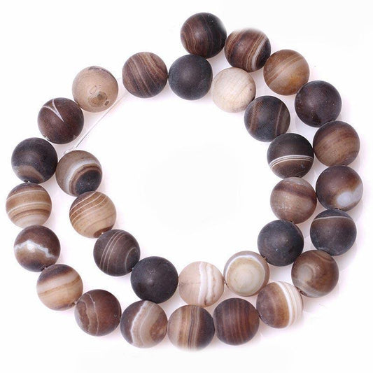 Perles d'agate à rayures de café, naturelles, givrées mates, rondes de 6 à 12 mm