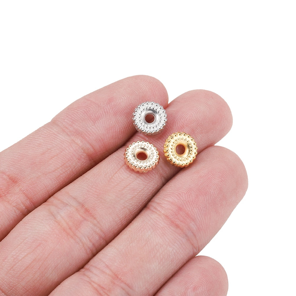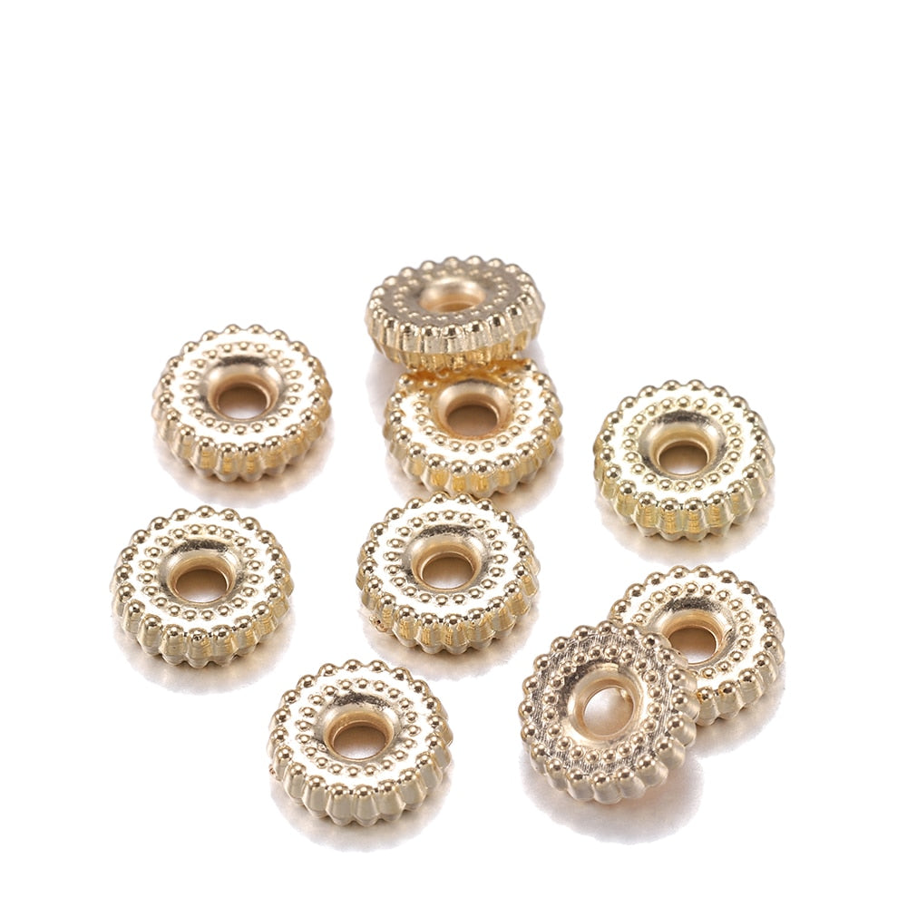 Beleben Sie Ihre Schmuckdesigns mit den CCB-Rondelle-Perlen aus Kunststoff. Ihre runde und dennoch flache Form verleiht jedem Accessoire einen einzigartigen Charme. Sie eignen sich perfekt für die Verwendung in Halsketten, Armbändern oder Fußkettchen und dienen als subtile Abstandshalter zwischen anderen Perlen oder Steinen. Sie bestehen aus strapazierfähigem und leichtem CCB-Kunststoff und versprechen Langlebigkeit und Komfort. Jede Packung enthält 200 Perlen, ideal für eigenständige und kombinierte Schmuckprojekte.