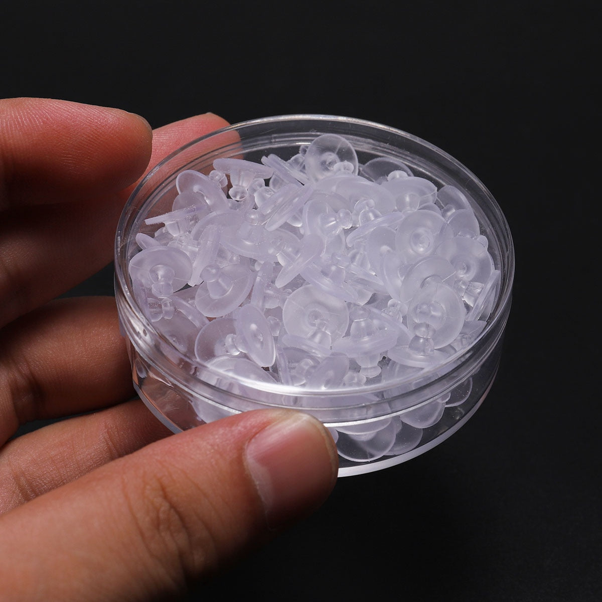Befestigen Sie Ihre Ohrringe stilvoll und bequem mit dieser Schachtel mit Ohrringverschlüssen und Stoppern aus Silikonkautschuk. Diese Kollektion sorgt dafür, dass Ihre Ohrringe sicher an ihrem Platz bleiben, egal ob Sie unterwegs oder im Ruhezustand sind. Ihre weiche Textur sorgt für längeres Tragen ohne Beschwerden und macht sie zu einem unverzichtbaren Accessoire für jeden Schmuckliebhaber.