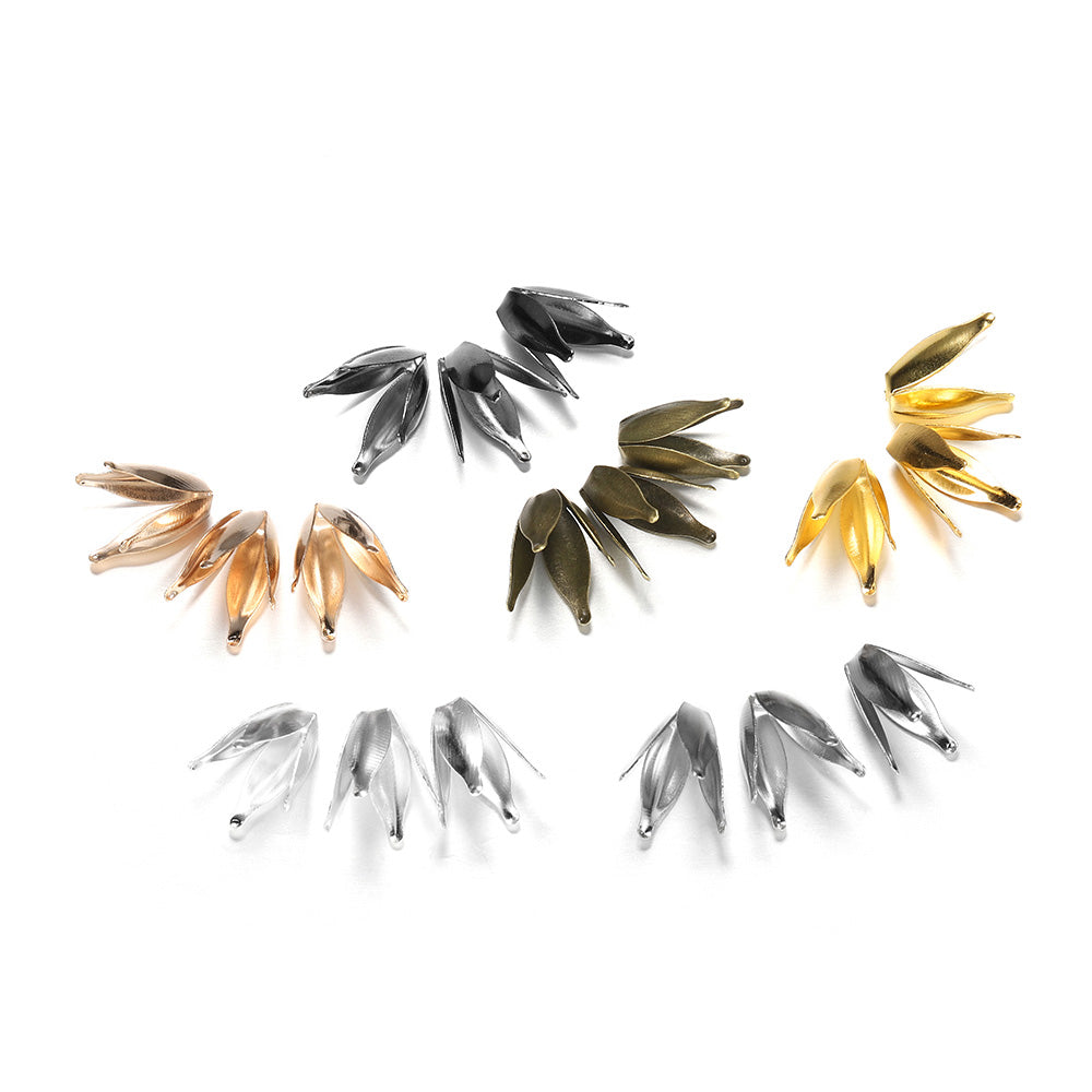 Filigrane Blütenblatt-Perlenkappen aus Silber und Gold, 100 Stück