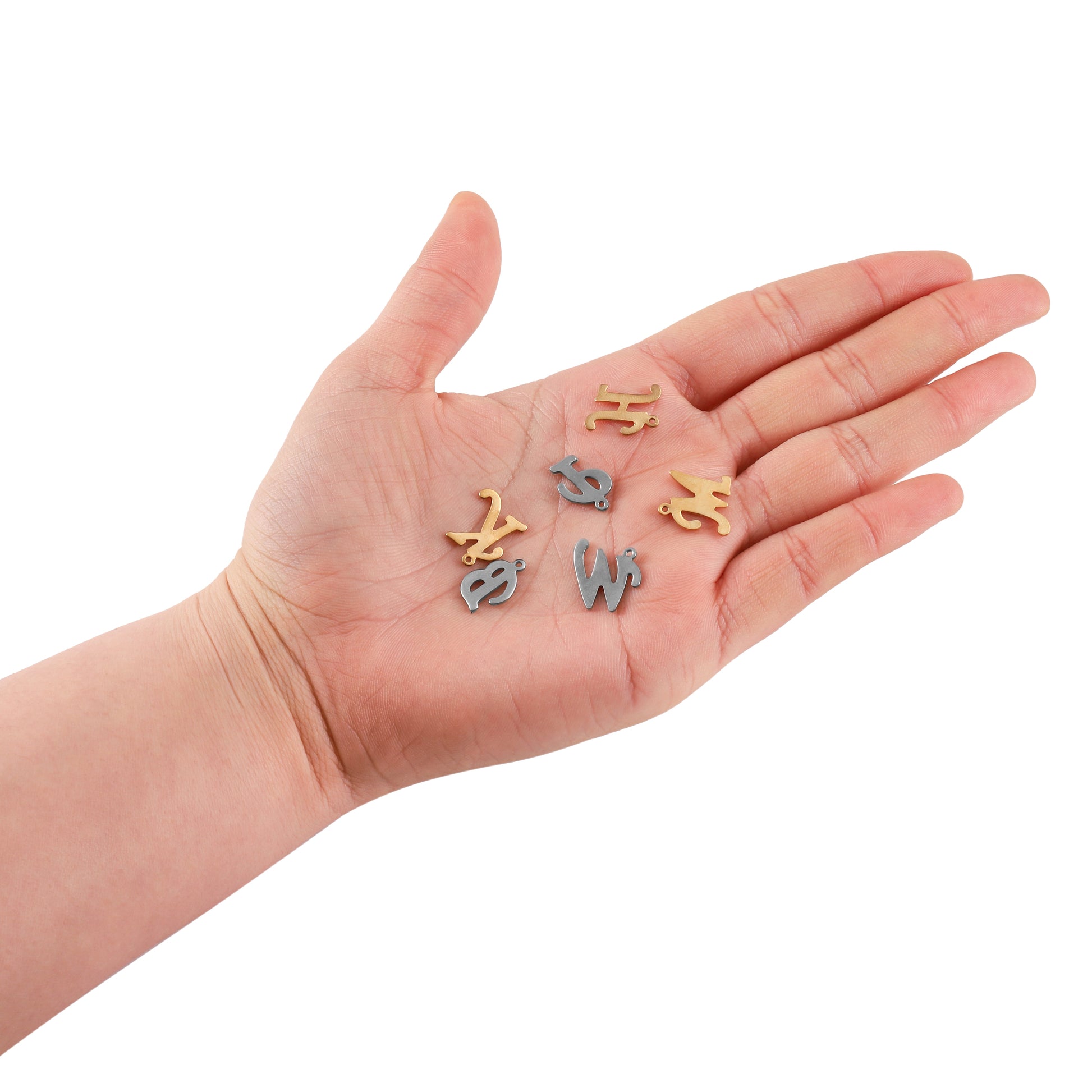 Feiern Sie die Kraft der Worte mit den englischen Buchstabenanhängern aus Edelstahl. Dieses 26-teilige Set stellt sicher, dass jeder Buchstabe vertreten ist, und bietet eine Welt voller Möglichkeiten für Schmuckkreationen auf Namens-, Wort- oder Initialenbasis. Jeder Anhänger ist aus robustem Edelstahl gefertigt und verspricht sowohl Stil als auch Substanz.