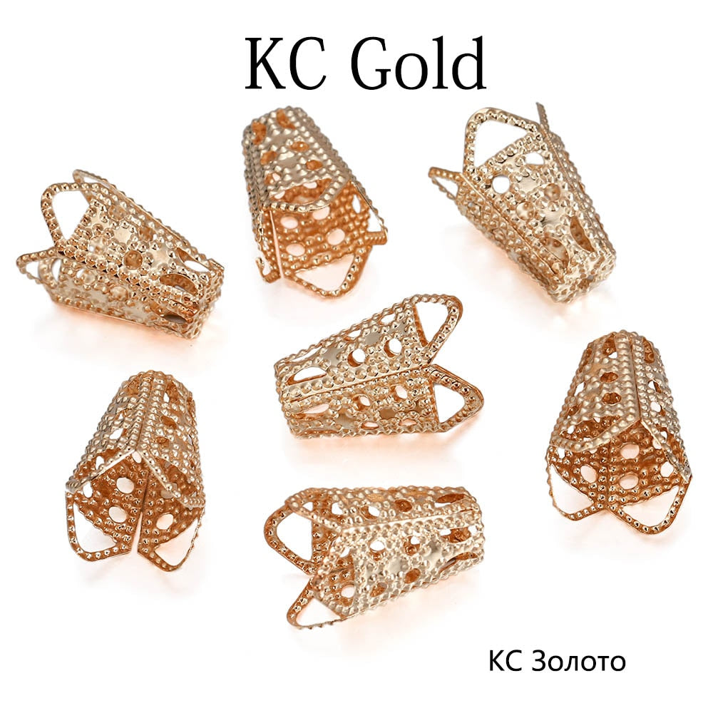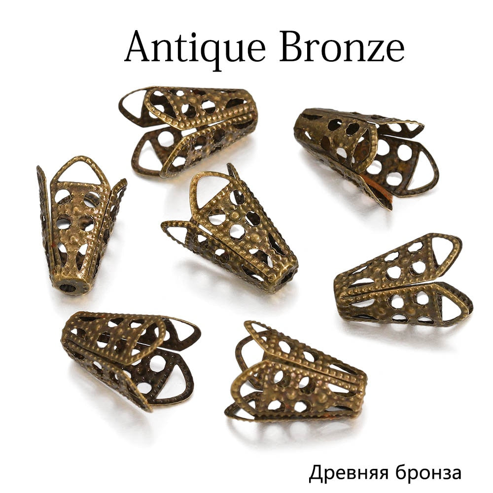 Tauchen Sie ein in eine Welt der Eleganz mit diesen ausgehöhlten Trompeten-Rocailles-Endkappen für Weinbecher aus Legierung. Sie ähneln den sanften Kurven eines Weinbechers und verleihen jedem Schmuckprojekt einen Hauch von Raffinesse. Sie sind in 50er-Packungen erhältlich und so gefertigt, dass sie Rocailles sicher halten und als perfekte Verbindungsstücke für Armbänder und Ohrringe dienen. Ihre einzigartige Trompetenform sorgt dafür, dass die Perlen im Mittelpunkt bleiben und gleichzeitig einen Hauch künstlerischer Brillanz verleihen. Sie bestehen aus einer haltbaren Legierung und versprechen Langlebigkeit und einen strahlenden Glanz, der die Aufmerksamkeit auf sich zieht.