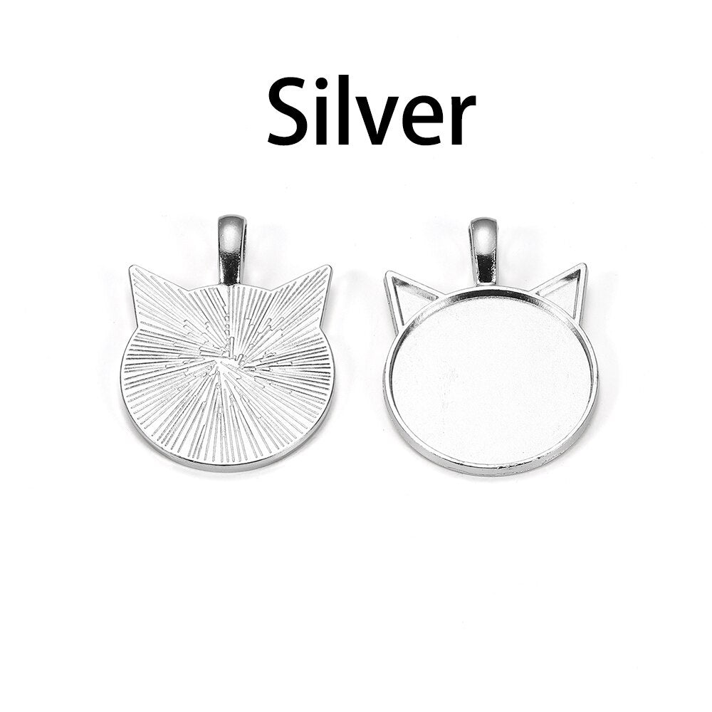 5pcs 25mm Cat Pattern Pendant Cabochon Base