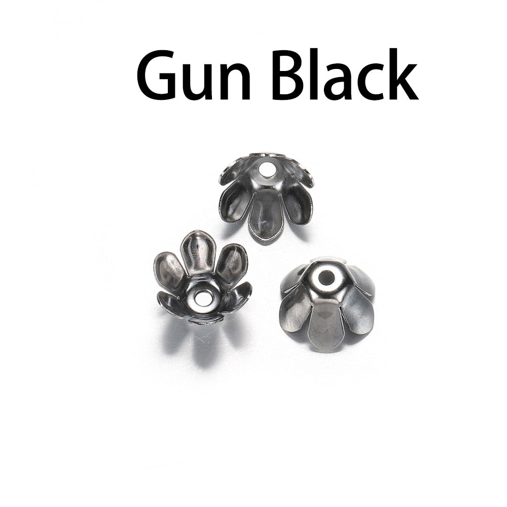 Capuchons de perles de fleurs à 6 feuilles en bronze doré, 50 pièces